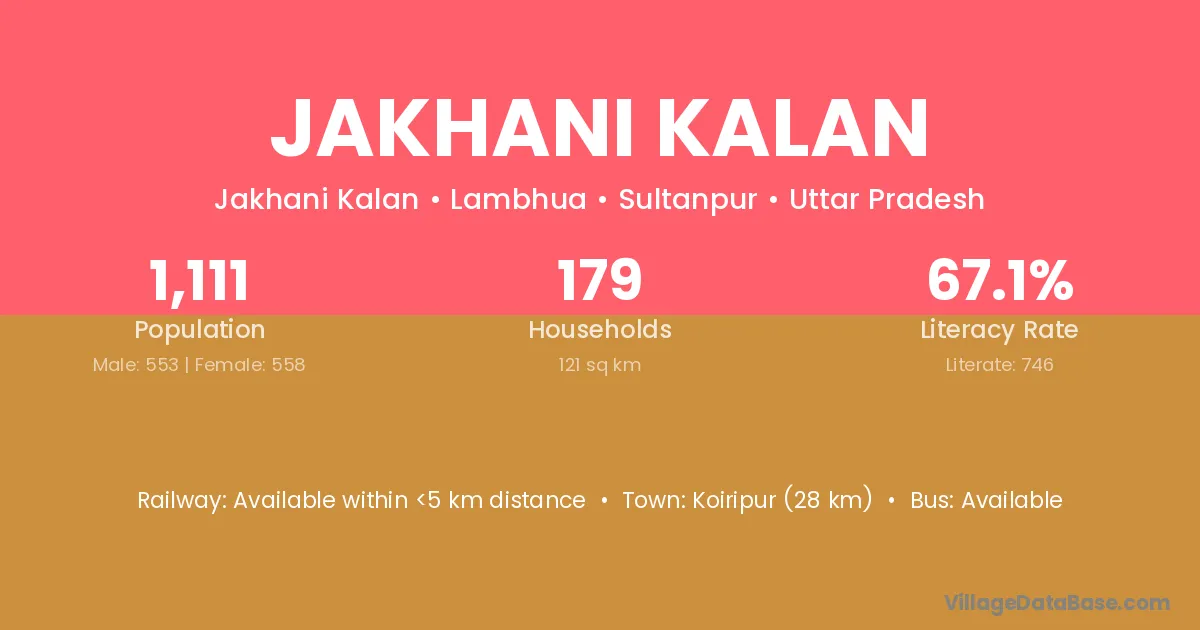Jakhani Kalan village has a total population of 1,111 people, of which 553 are males and 558 are females.