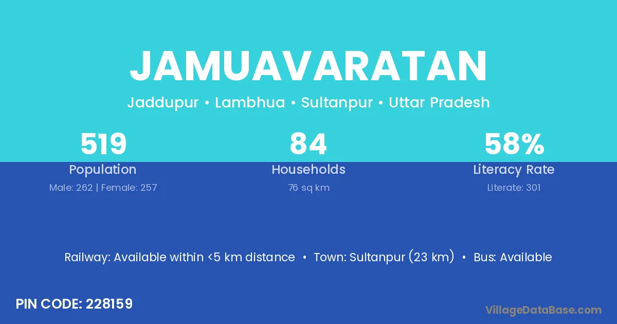 Sultanpur (23 km) is the nearest town to Jamuavaratan village for major economic activities and is located approximately 23 km away.