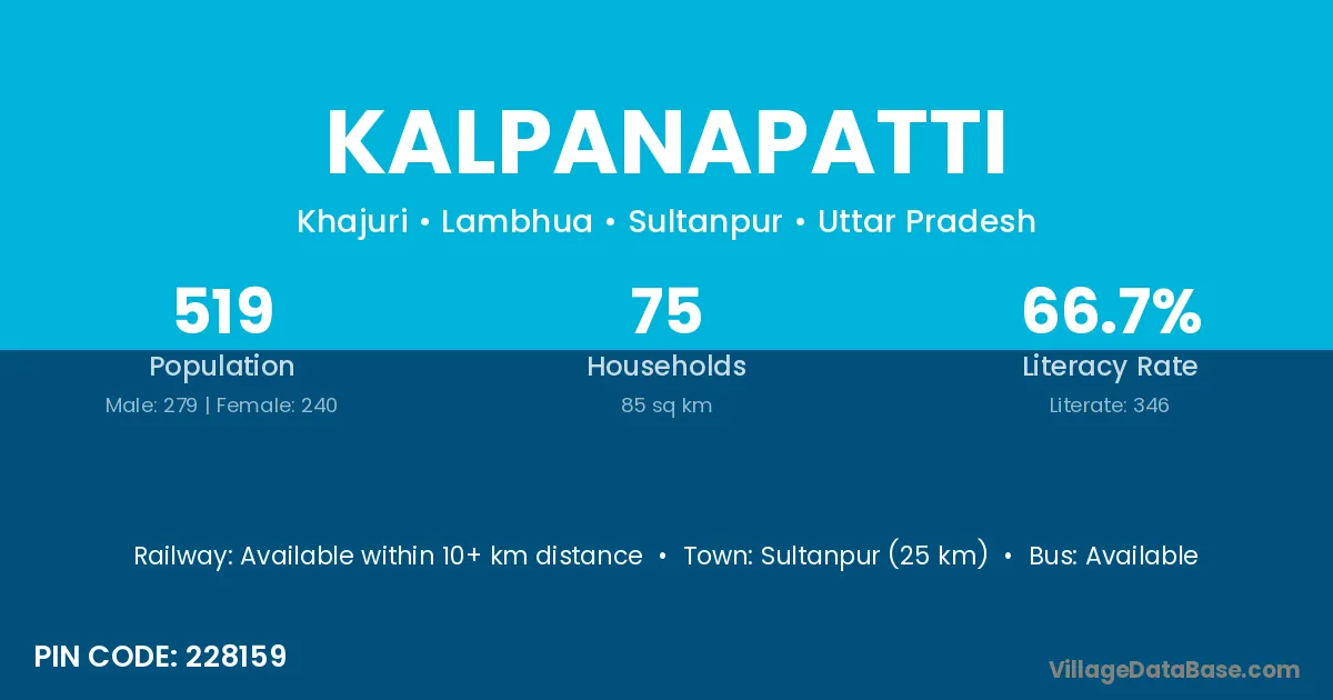Sultanpur (25 km) is the nearest town to Kalpanapatti village for major economic activities and is located approximately 25 km away.