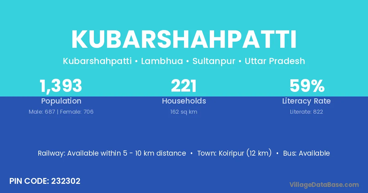 Koiripur (12 km) is the nearest town to Kubarshahpatti village for major economic activities and is located approximately 12 km away.