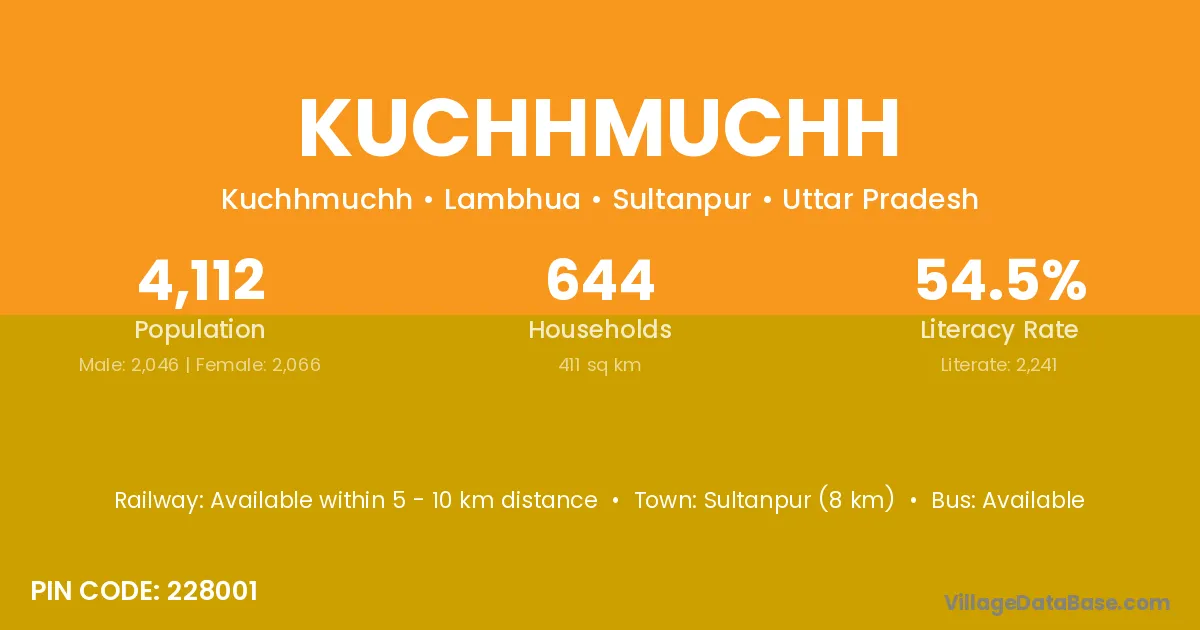 Sultanpur (8 km) is the nearest town to Kuchhmuchh village for major economic activities and is located approximately 8 km away.