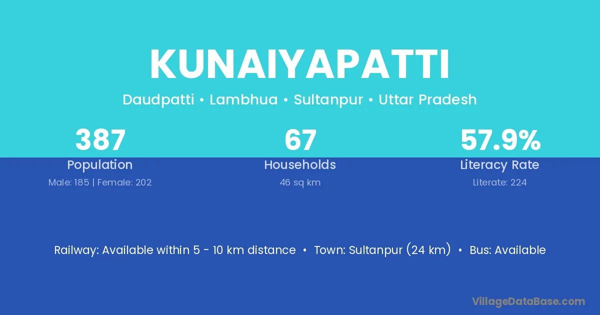 Sultanpur (24 km) is the nearest town to Kunaiyapatti village for major economic activities and is located approximately 24 km away.