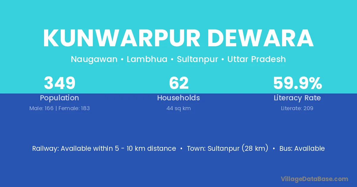 Sultanpur (28 km) is the nearest town to Kunwarpur Dewara village for major economic activities and is located approximately 28 km away.