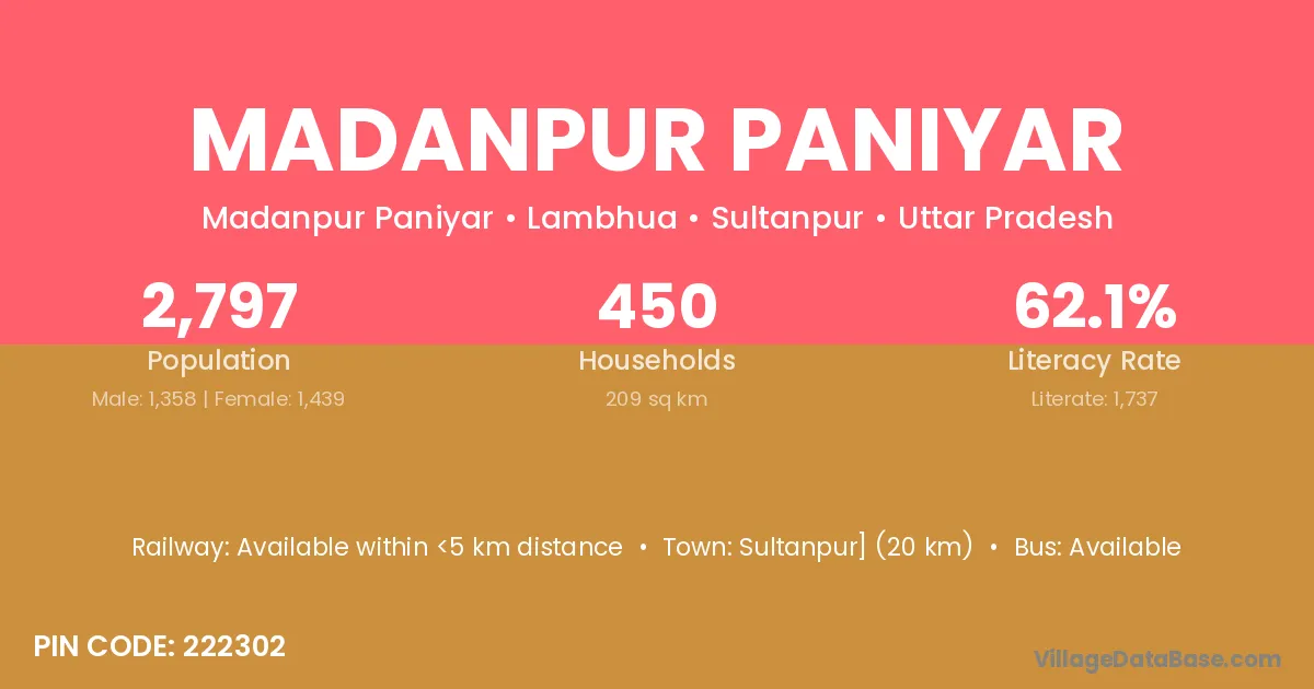Sultanpur] (20 km) is the nearest town to Madanpur Paniyar village for major economic activities and is located approximately 20 km away.