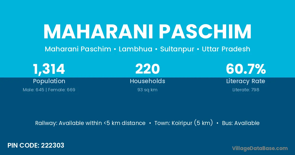 Maharani Paschim village is located in the Lambhua Tehsil of the Sultanpur district in Uttar Pradesh .