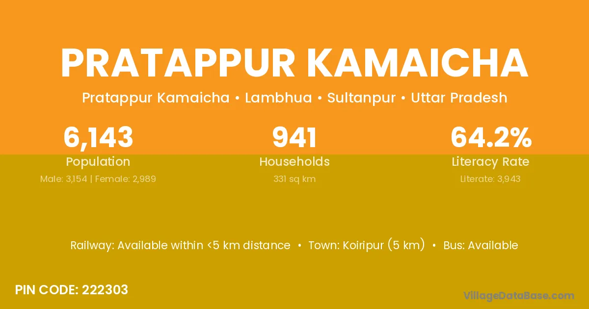 Pratappur Kamaicha village has a total population of 6,143 people, of which 3,154 are males and 2,989 are females.
