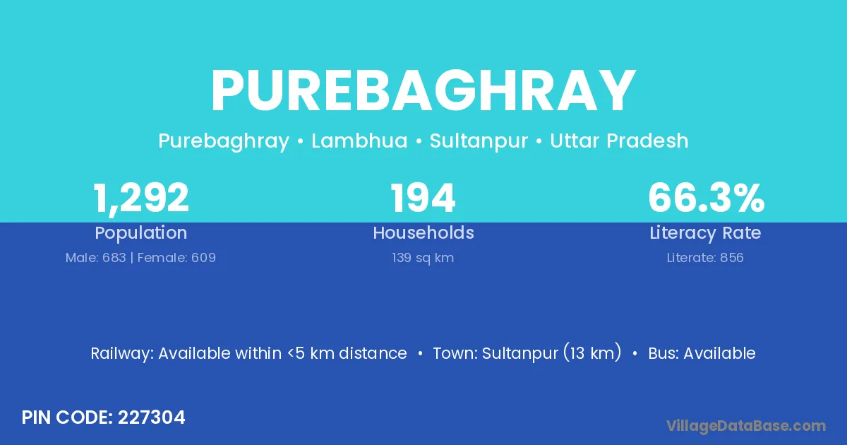 Sultanpur (13 km) is the nearest town to Purebaghray village for major economic activities and is located approximately 13 km away.