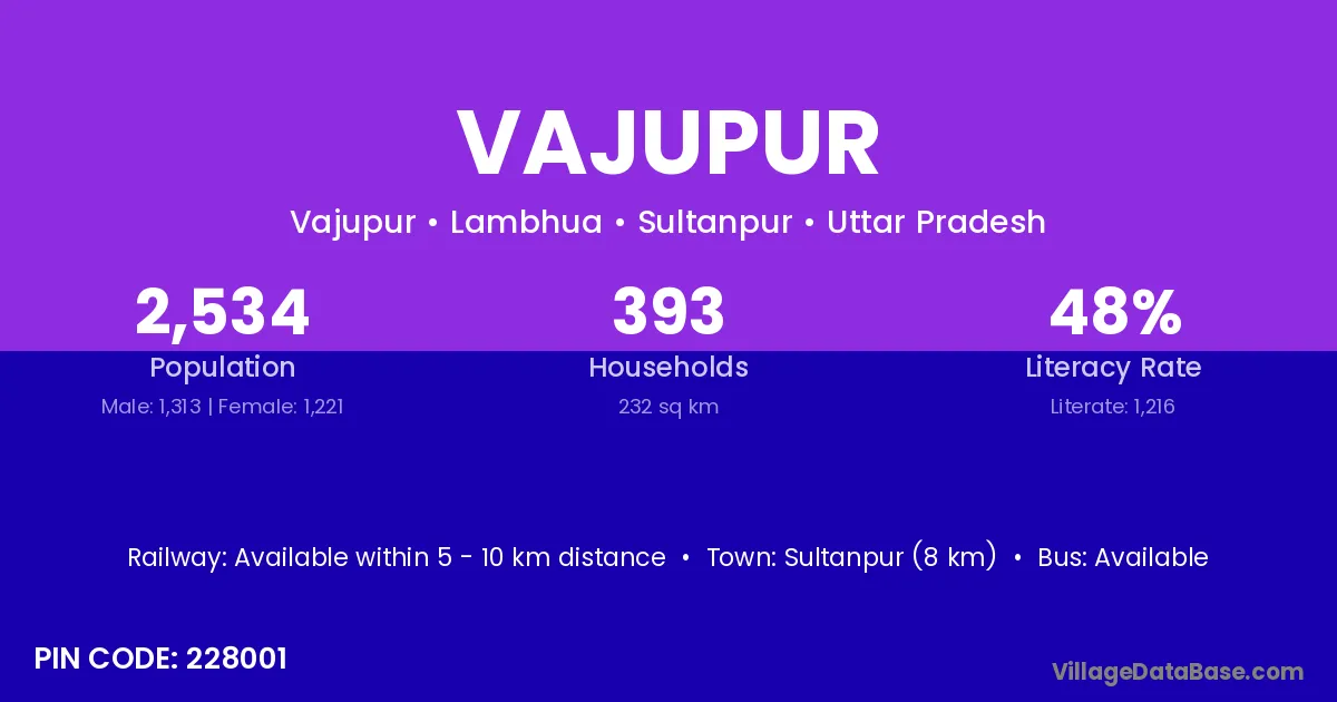 Sultanpur (8 km) is the nearest town to Vajupur village for major economic activities and is located approximately 8 km away.