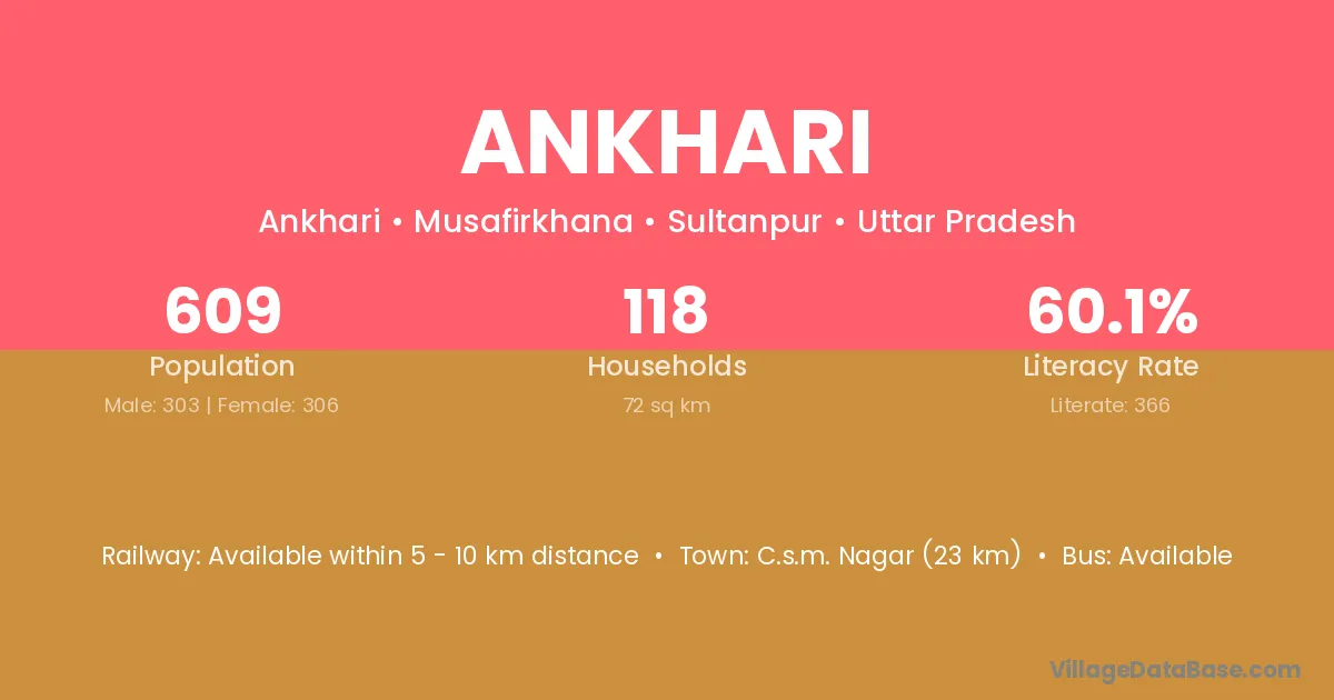Ankhari village has a total population of 609 people, of which 303 are males and 306 are females.