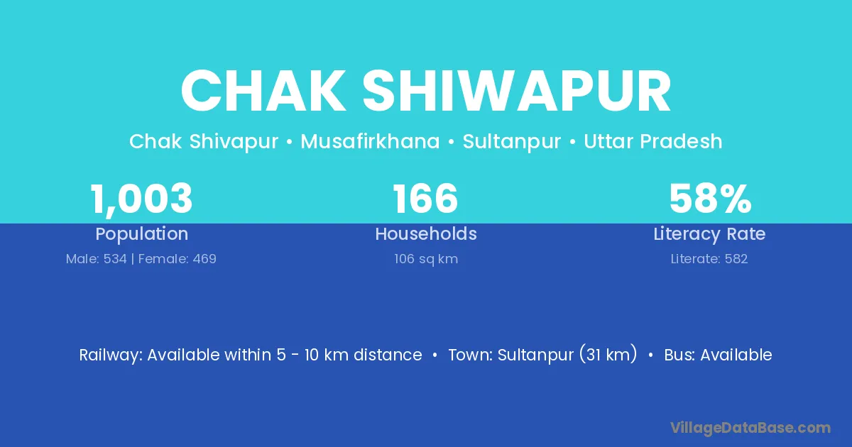 Sultanpur (31 km) is the nearest town to Chak Shiwapur village for major economic activities and is located approximately 31 km away.