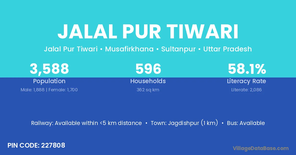 Jagdishpur (1 km) is the nearest town to Jalal Pur Tiwari village for major economic activities and is located approximately 1 km away.