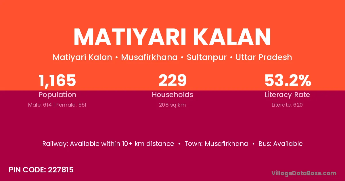 Musafirkhana is the nearest town to Matiyari Kalan village for major economic activities