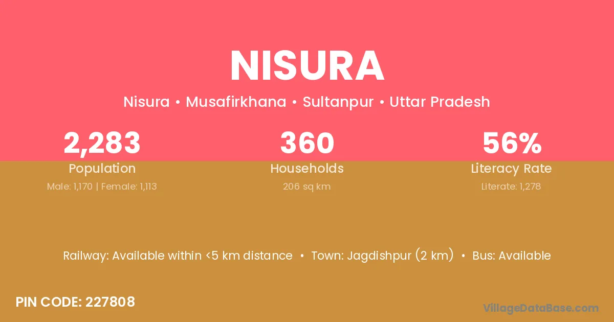 Jagdishpur (2 km) is the nearest town to Nisura village for major economic activities and is located approximately 2 km away.