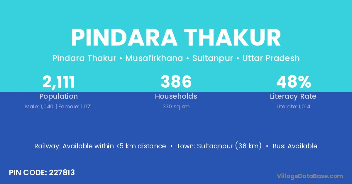 Sultaqnpur (36 km) is the nearest town to Pindara Thakur village for major economic activities and is located approximately 36 km away.