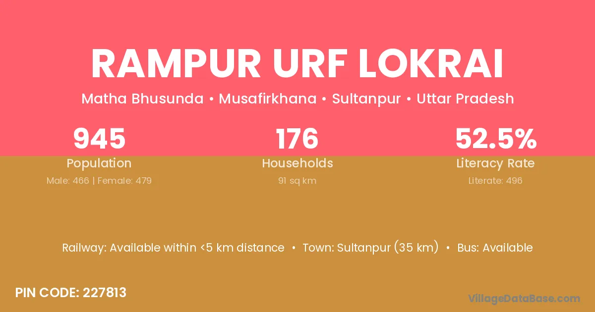 Sultanpur (35 km) is the nearest town to Rampur Urf Lokrai village for major economic activities and is located approximately 35 km away.