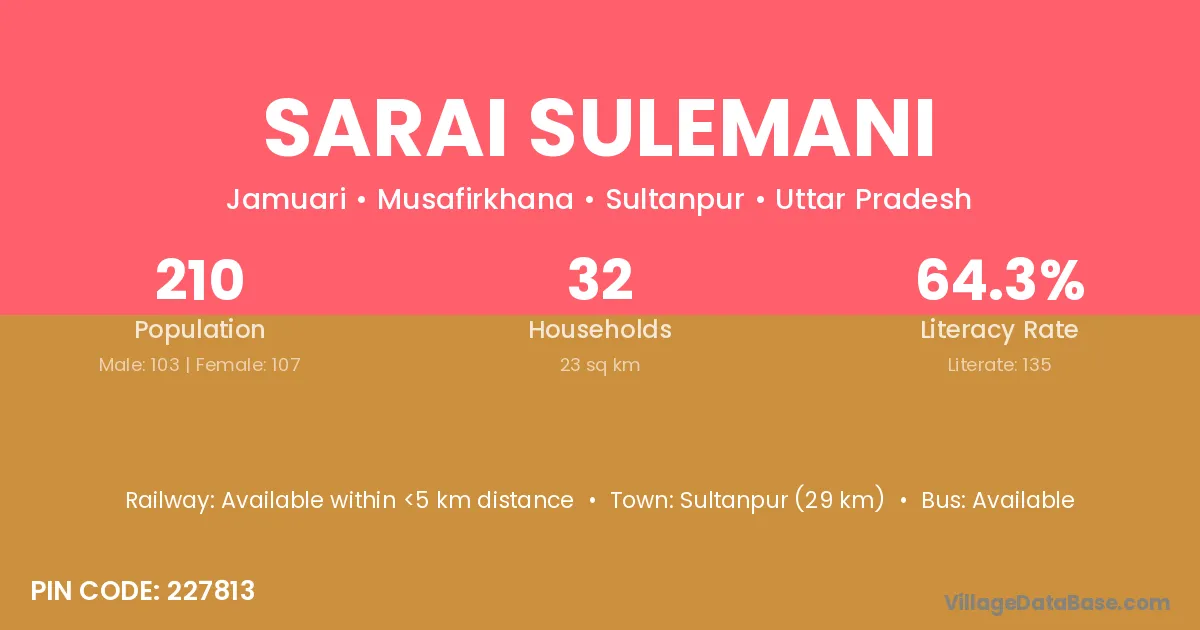 Sultanpur (29 km) is the nearest town to Sarai Sulemani village for major economic activities and is located approximately 29 km away.