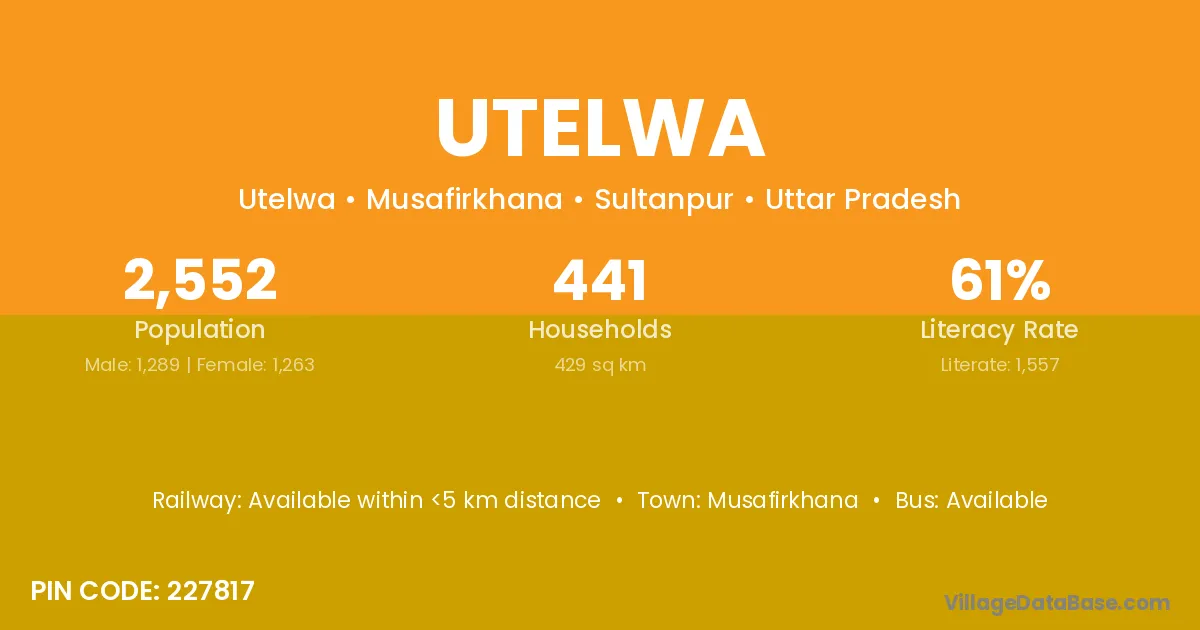 Musafirkhana is the nearest town to Utelwa village for major economic activities