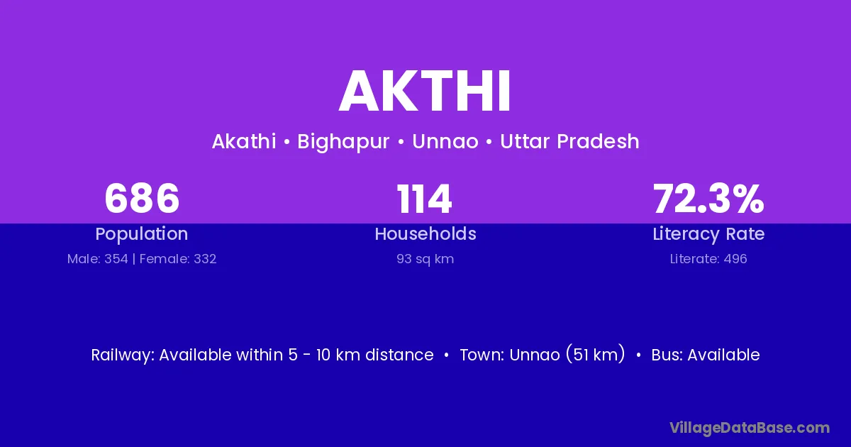 Unnao (51 km) is the nearest town to Akthi village for major economic activities and is located approximately 51 km away.