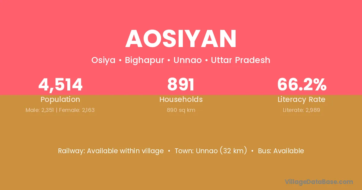 Unnao (32 km) is the nearest town to Aosiyan village for major economic activities and is located approximately 32 km away.