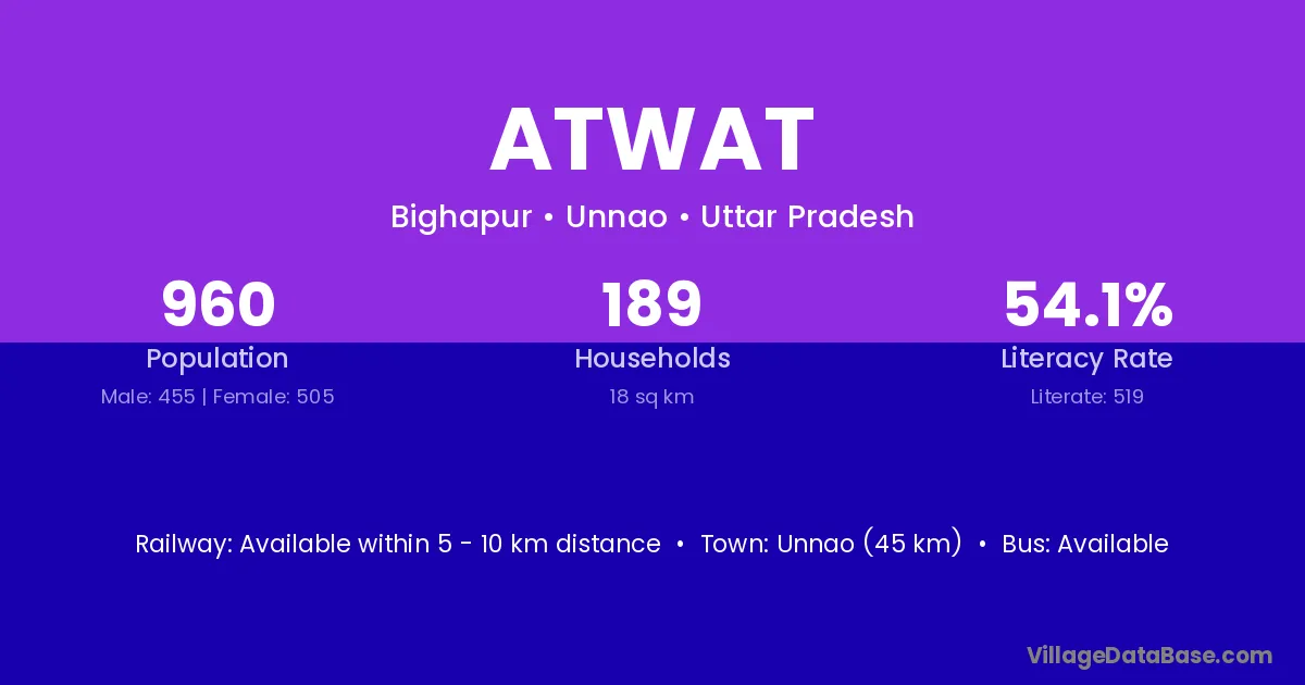 Unnao (45 km) is the nearest town to Atwat village for major economic activities and is located approximately 45 km away.