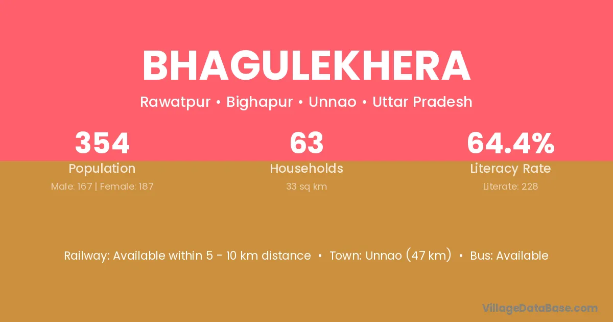 Unnao (47 km) is the nearest town to Bhagulekhera village for major economic activities and is located approximately 47 km away.