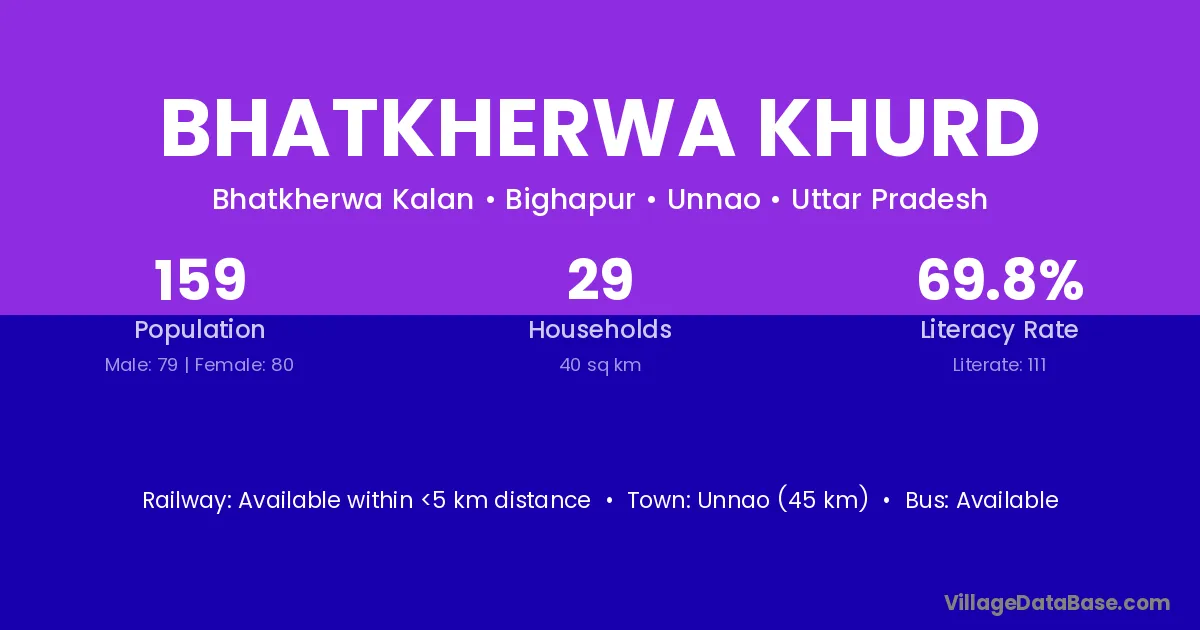 Bhatkherwa Khurd village has a total population of 159 people, of which 79 are males and 80 are females.