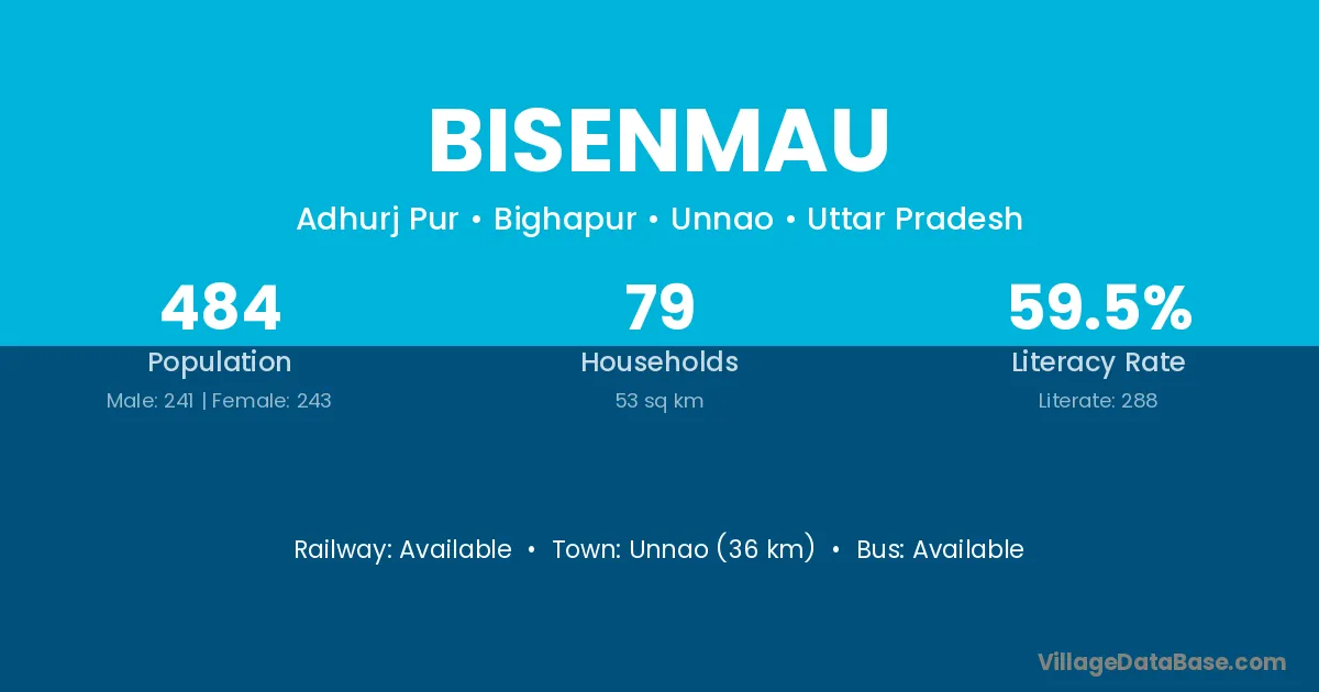 Unnao (36 km) is the nearest town to Bisenmau village for major economic activities and is located approximately 36 km away.