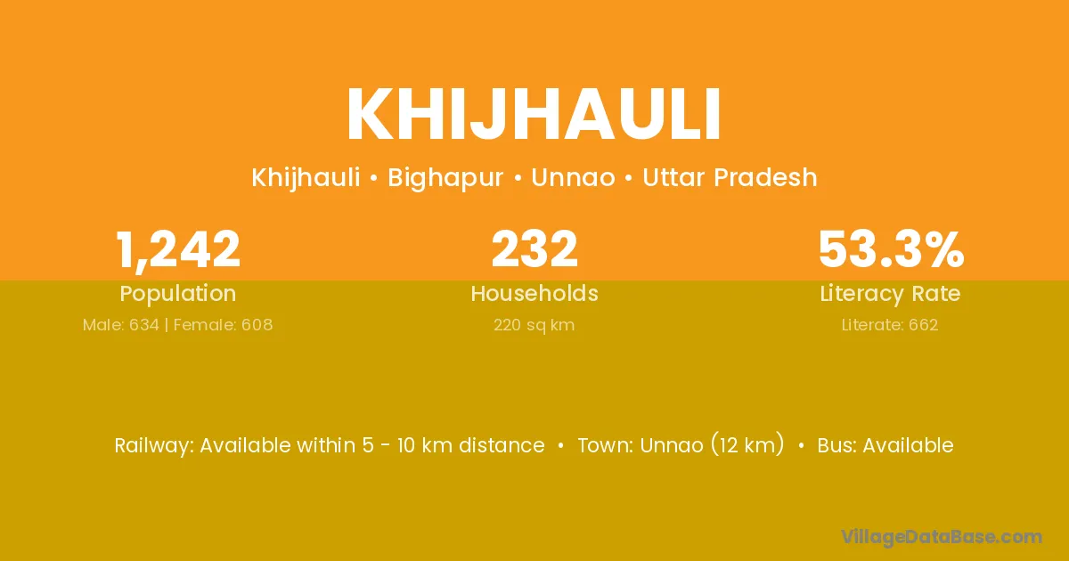 Khijhauli village has a total population of 1,242 people, of which 634 are males and 608 are females.