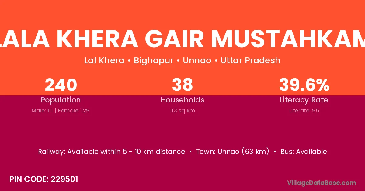 According to Census 2011 information, the village code of Lala Khera Gair Mustahkam village is 229501.