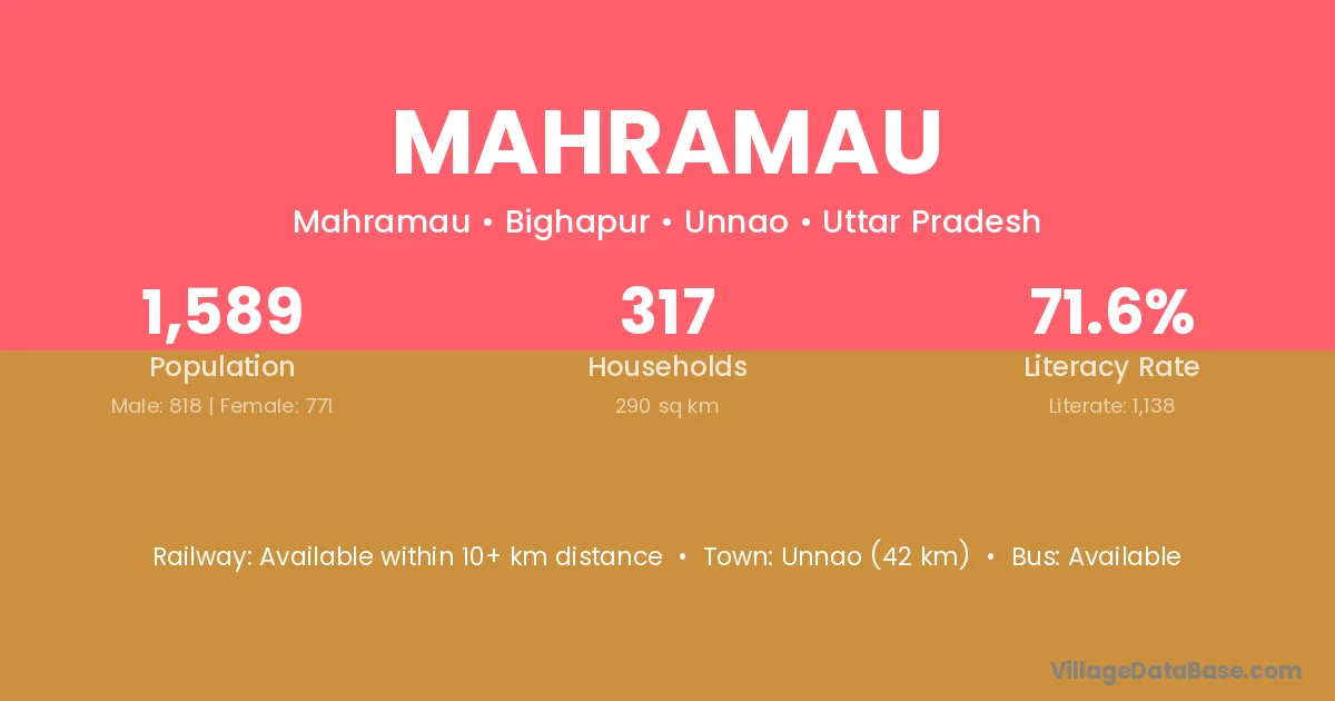 Unnao (42 km) is the nearest town to Mahramau village for major economic activities and is located approximately 42 km away.