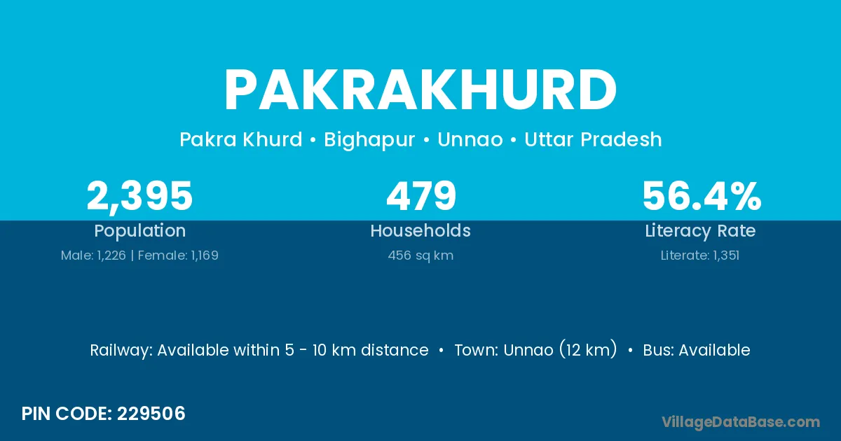 Unnao (12 km) is the nearest town to Pakrakhurd village for major economic activities and is located approximately 12 km away.