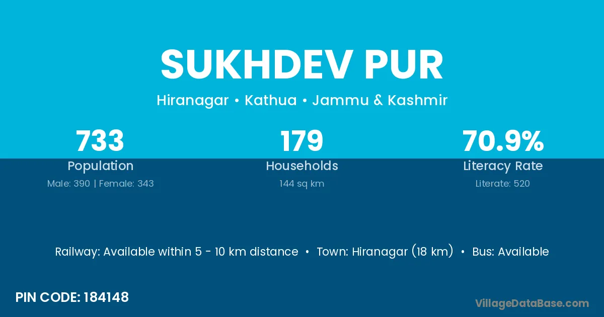 Sukhdev Pur village has a total population of 387 people, of which 198 are males and 189 are females.