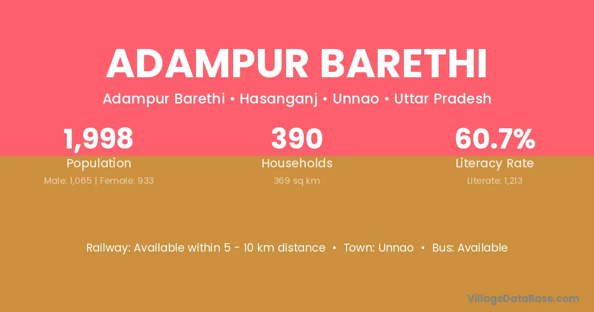 Unnao is the nearest town to Adampur Barethi village for major economic activities