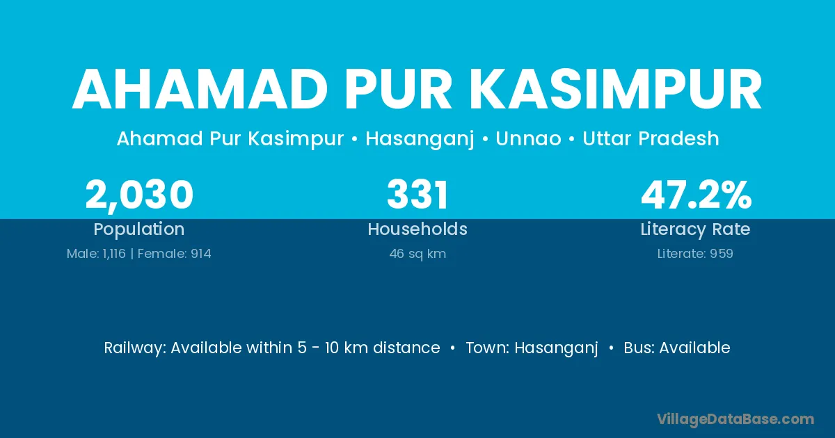 Ahamad Pur Kasimpur village has a total population of 2,030 people, of which 1,116 are males and 914 are females.