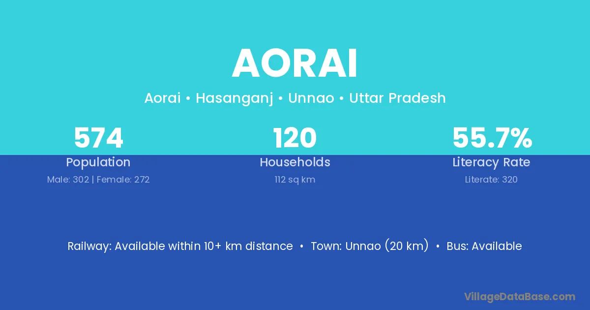 Unnao (20 km) is the nearest town to Aorai village for major economic activities and is located approximately 20 km away.