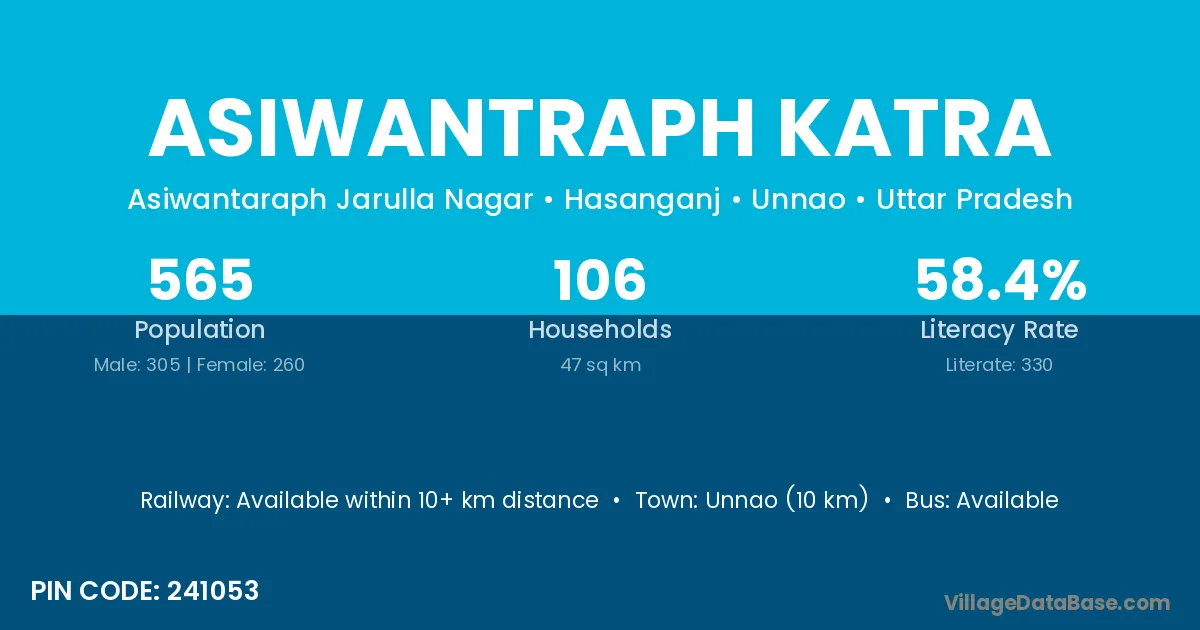 Unnao (10 km) is the nearest town to Asiwantraph Katra village for major economic activities and is located approximately 10 km away.