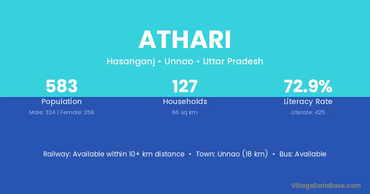 Unnao (18 km) is the nearest town to Athari village for major economic activities and is located approximately 18 km away.