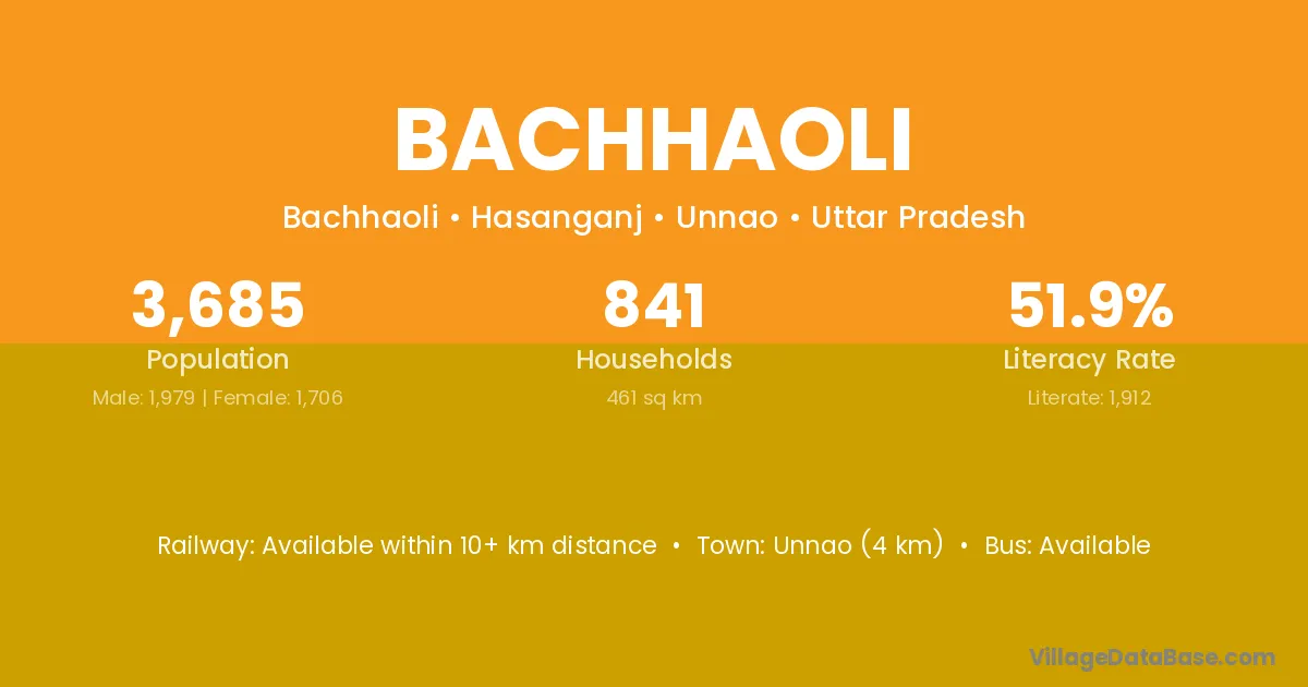 Unnao (4 km) is the nearest town to Bachhaoli village for major economic activities and is located approximately 4 km away.