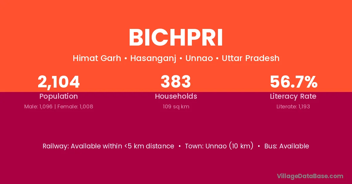 Unnao (10 km) is the nearest town to Bichpri village for major economic activities and is located approximately 10 km away.