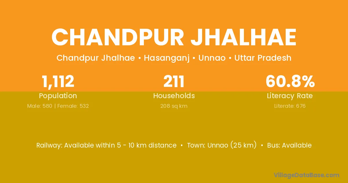 Chandpur Jhalhae village has a total population of 1,112 people, of which 580 are males and 532 are females.