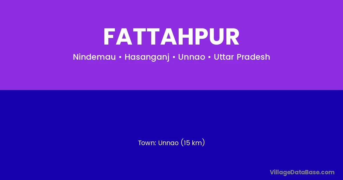 Unnao (15 km) is the nearest town to Fattahpur village for major economic activities and is located approximately 15 km away.