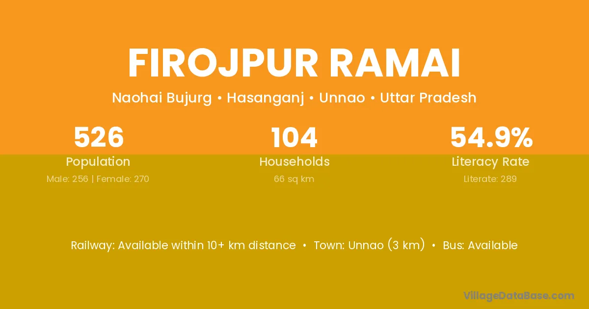 Unnao (3 km) is the nearest town to Firojpur Ramai village for major economic activities and is located approximately 3 km away.