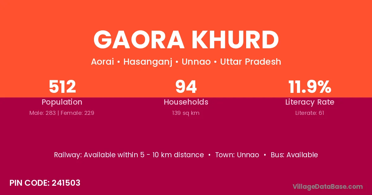 According to Census 2011 information, the village code of Gaora Khurd village is 241503.