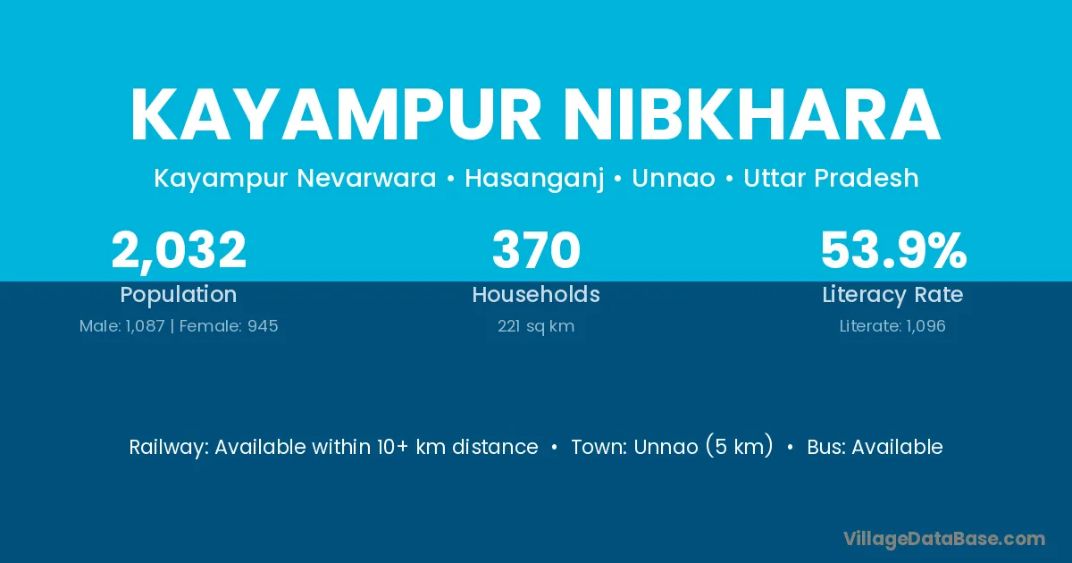 Unnao (5 km) is the nearest town to Kayampur Nibkhara village for major economic activities and is located approximately 5 km away.