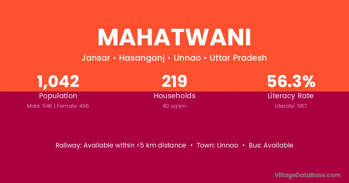 Unnao is the nearest town to Mahatwani village for major economic activities