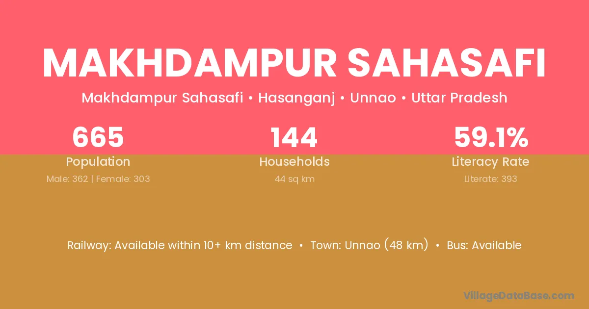 Unnao (48 km) is the nearest town to Makhdampur Sahasafi village for major economic activities and is located approximately 48 km away.