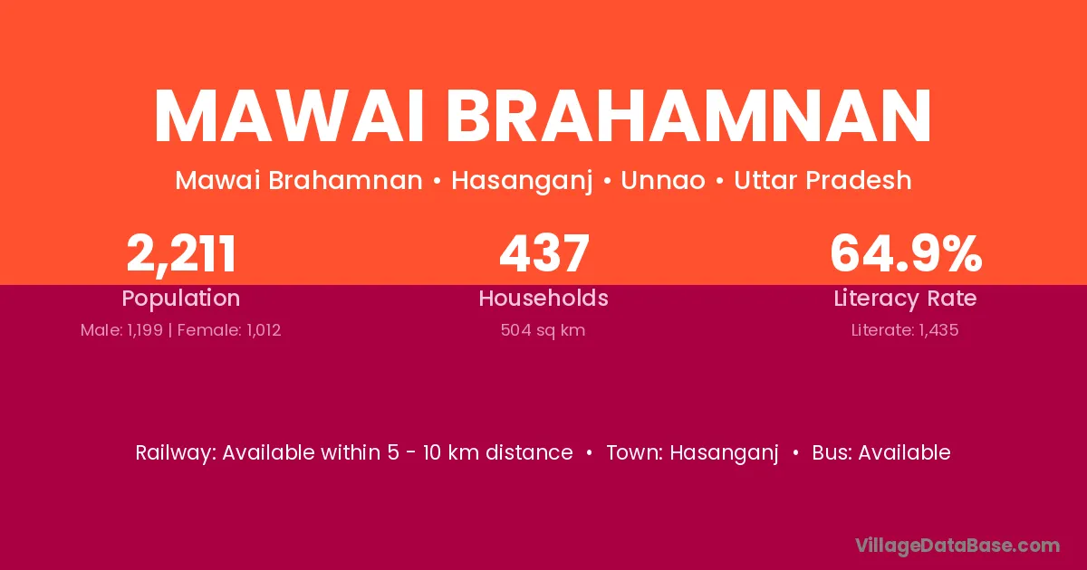 Mawai Brahamnan village has a total population of 2,211 people, of which 1,199 are males and 1,012 are females.