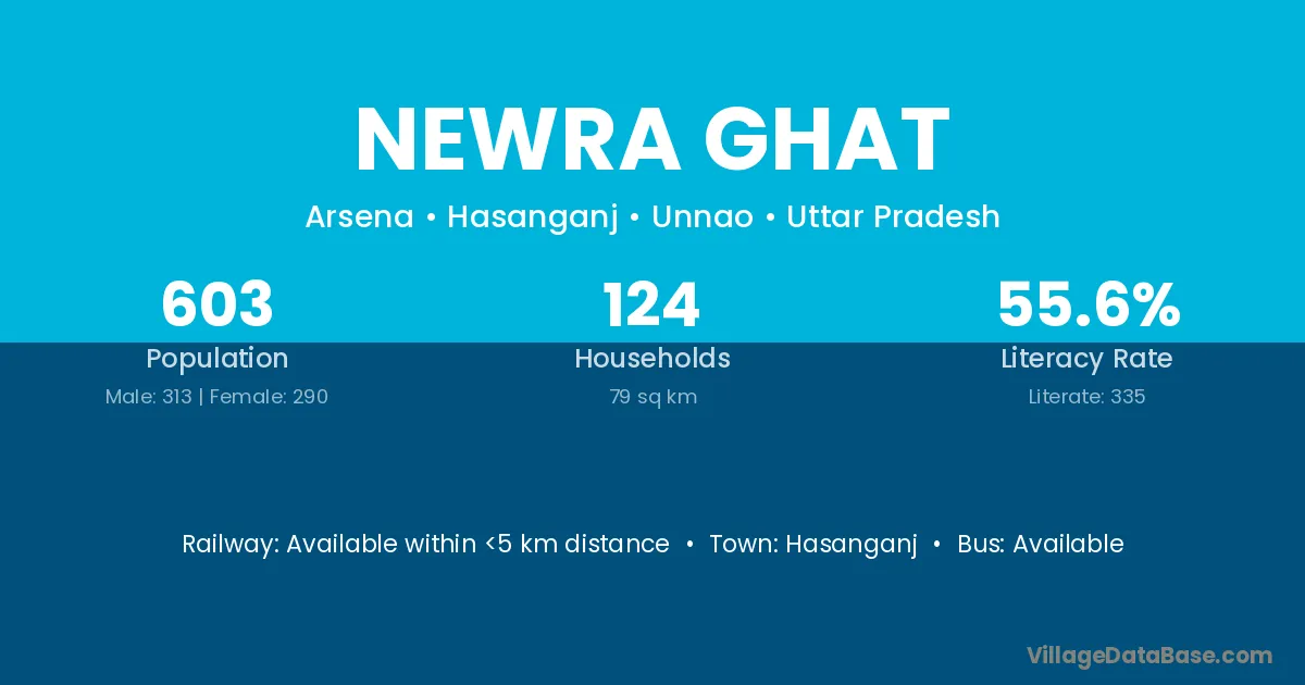 Newra Ghat village has a total population of 603 people, of which 313 are males and 290 are females.