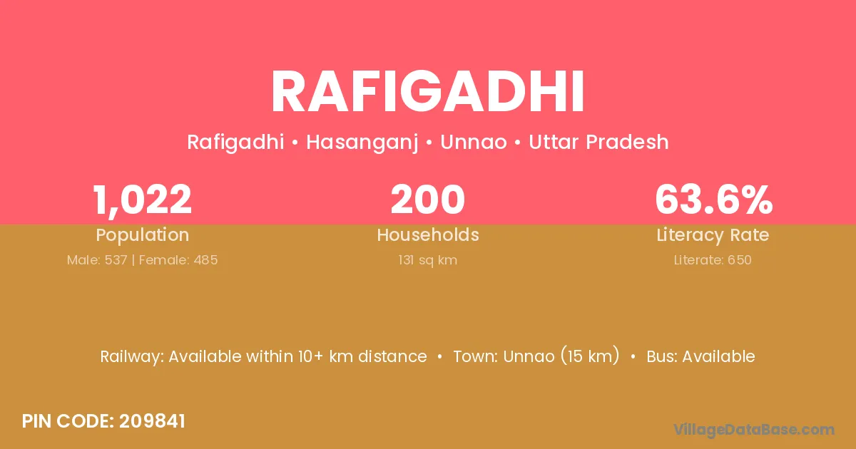 Unnao (15 km) is the nearest town to Rafigadhi village for major economic activities and is located approximately 15 km away.