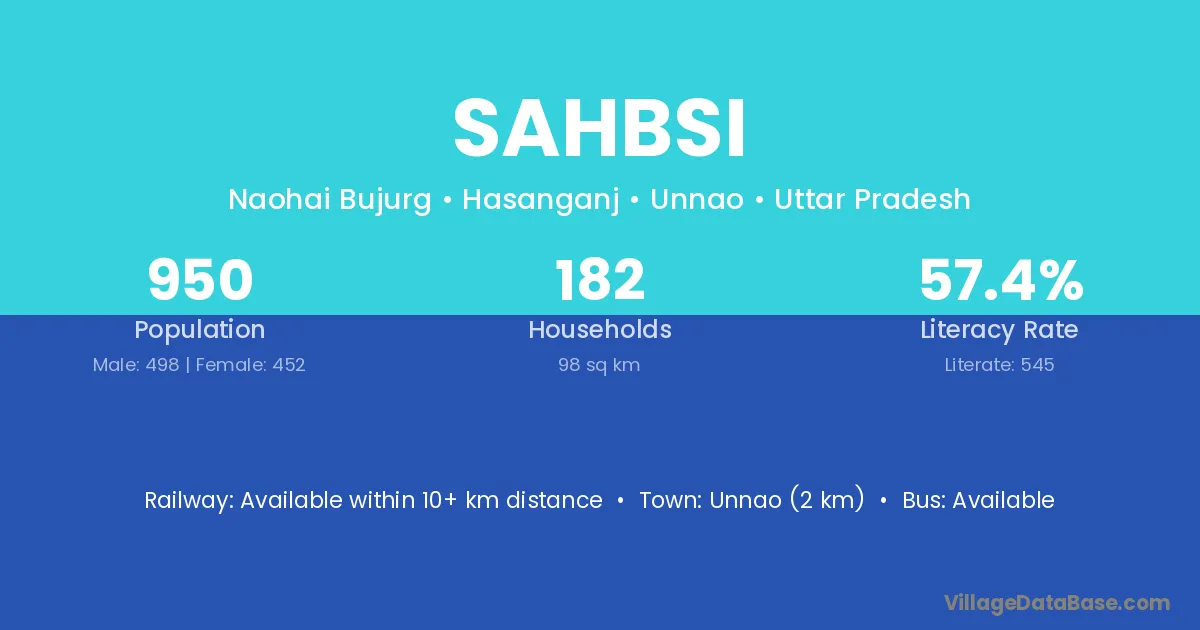 Unnao (2 km) is the nearest town to Sahbsi village for major economic activities and is located approximately 2 km away.